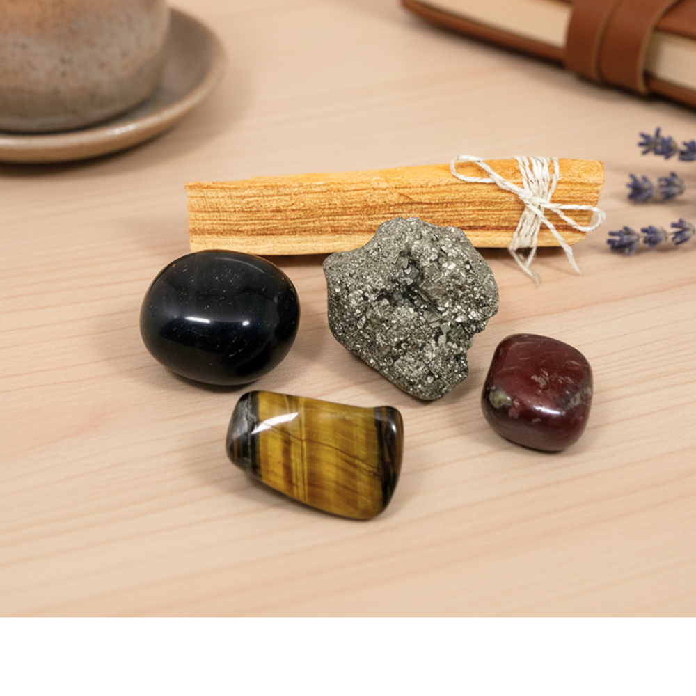Set of crystals perfect for the practice of grounding and spiritual elevation.