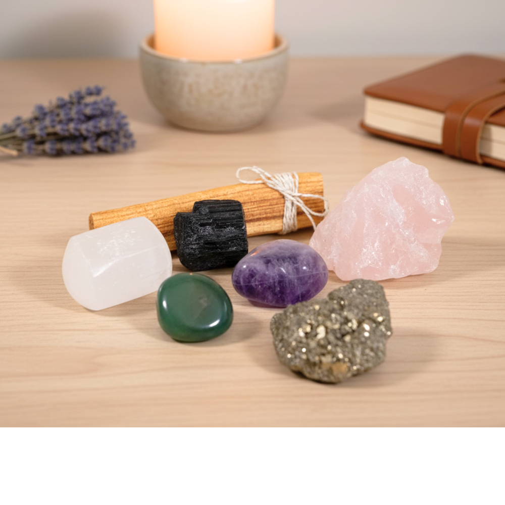 Set of crystals for different areas of life: Love, Health, Spirituality, Prosperity, Protection and Energy Cleansing.