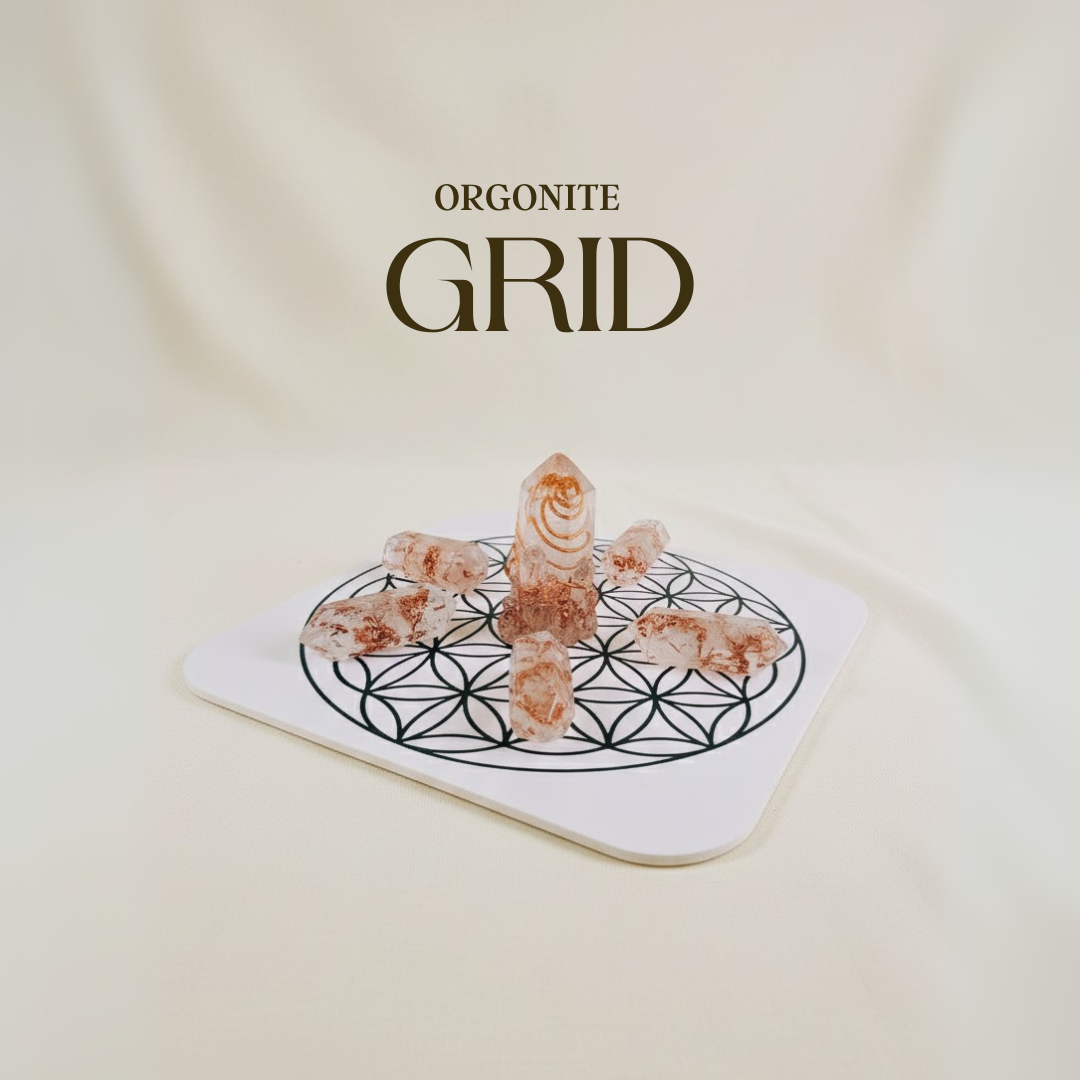 Com os nossos Orgonite Grids, usas a geometria sagrada e a energia da orgonite para dar vida aos teus objetivos e alinhar a tua energia com o que queres criar.