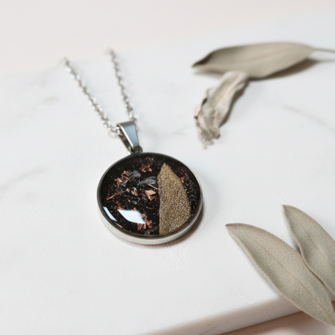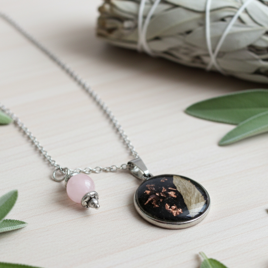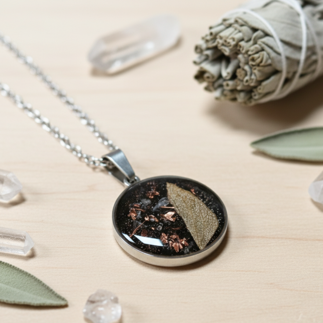 Esta joia é um amuleto que cria um campo de purificação contínua, atuando para libertar o que já não serve e restaurar a leveza no teu ser. A sua energia trabalha de forma subtil, mas poderosa, ajudando a harmonizar o teu campo energético, purificando as energias a tua volta através da fitoenergia da Sálvia.
