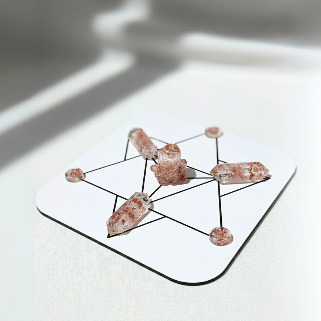 - Proteção e Equilíbrio: Coloca os teus cristais nas arestas para criar um escudo de energia que te proteja e harmonize.