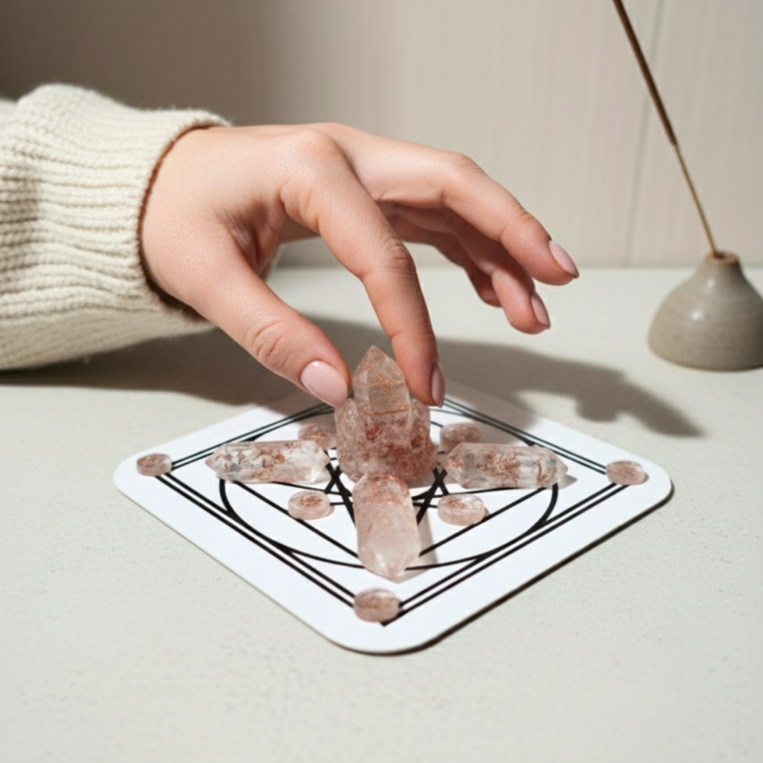 - Foco e Manifestação: Coloca um pedido escrito no centro do gráfico e posiciona os cristais que ressoam com a sua intenção nas arestas. A sua energia atuará para ajudar a concretizar os teus sonhos.